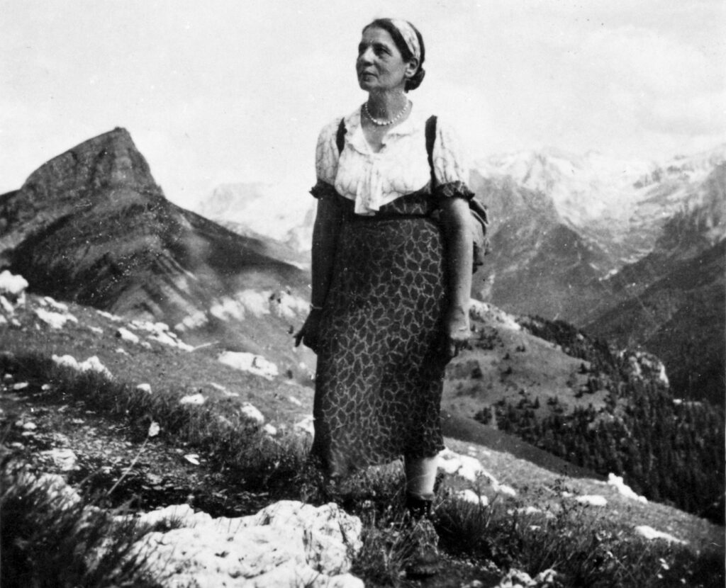Zdjęcie przedstawia Lise Meitner podczas wycieczki w okolice Selva di Val Gardena, latem 1937 roku. Była to jej ostatnia wizyta w Austrii – zaledwie rok później, jako osoba pochodzenia żydowskiego, musiała uciekać z nazistowskich Niemiec.